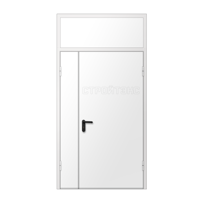 Дверь двупольная металлическая противопожарная с фрамугой изготавливается по индивидуальным размерам на нашем собственном производстве. Полотно и рама двери выполнена из металла 1,2 или 1,4 мм. Цвет двери может быть абсолютно любой по шкале RAL, используем порошковое напыление. Качественная упаковка обеспечит доставку в другой регион без рисков. Срок изготовления в среднем занимает 7 дней.