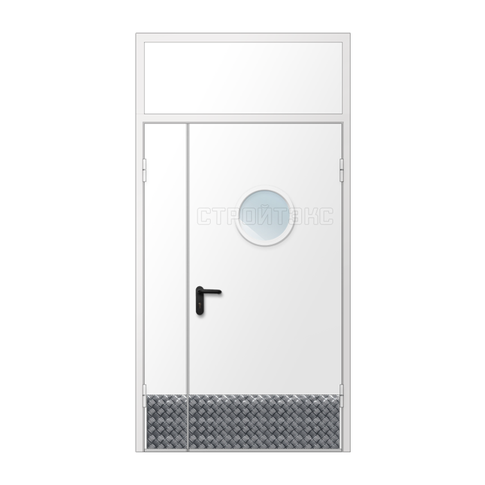 Дверь двупольная металлическая противопожарная с фрамугой изготавливается по индивидуальным размерам на нашем собственном производстве. Полотно и рама двери выполнена из металла 1,2 или 1,4 мм. Цвет двери может быть абсолютно любой по шкале RAL, используем порошковое напыление. Качественная упаковка обеспечит доставку в другой регион без рисков. Срок изготовления в среднем занимает 7 дней.