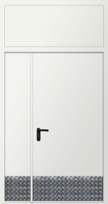 Дверь двупольная металлическая противопожарная с фрамугой изготавливается по индивидуальным размерам на нашем собственном производстве. Полотно и рама двери выполнена из металла 1,2 или 1,4 мм. Цвет двери может быть абсолютно любой по шкале RAL, используем порошковое напыление. Качественная упаковка обеспечит доставку в другой регион без рисков. Срок изготовления в среднем занимает 7 дней.