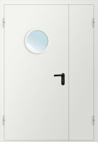 Дверь двупольная металлическая противопожарная с остеклением изготавливается по индивидуальным размерам на нашем собственном производстве. Полотно и рама двери выполнена из металла 1,2 или 1,4 мм. Цвет двери может быть абсолютно любой по шкале RAL, используем порошковое напыление. Качественная упаковка обеспечит доставку в другой регион без рисков. Срок изготовления в среднем занимает 7 дней.