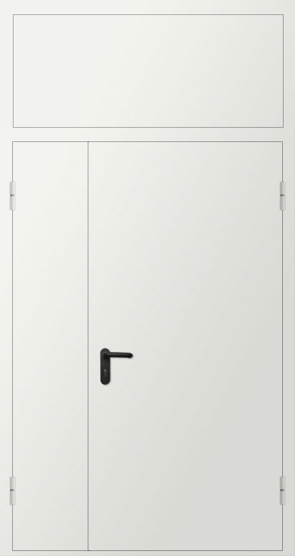 Дверь двупольная металлическая противопожарная с фрамугой изготавливается по индивидуальным размерам на нашем собственном производстве. Полотно и рама двери выполнена из металла 1,2 или 1,4 мм. Цвет двери может быть абсолютно любой по шкале RAL, используем порошковое напыление. Качественная упаковка обеспечит доставку в другой регион без рисков. Срок изготовления в среднем занимает 7 дней.