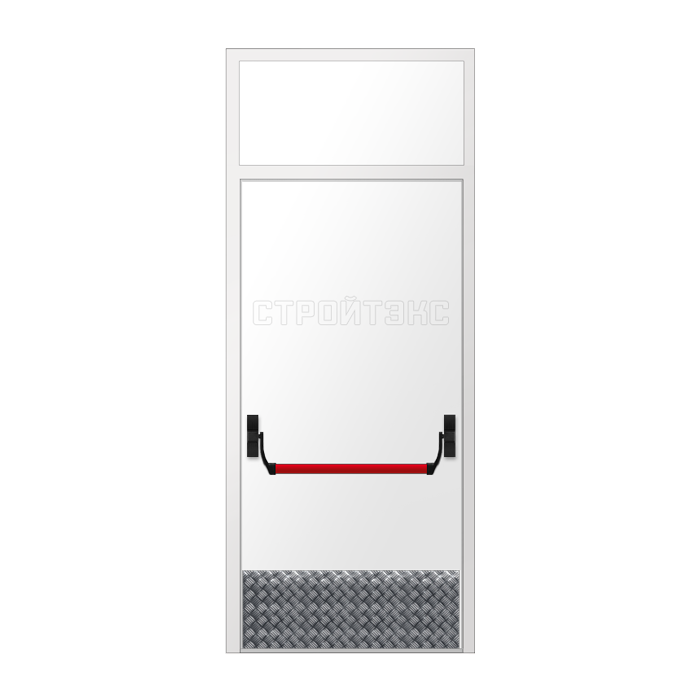 Дверь противопожарная металлическая EIS60 со скрытыми петлями, фрамугой, Антипаникой и накладкой из алюминия
