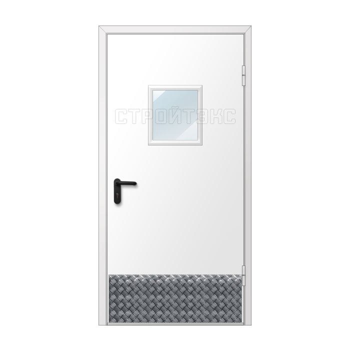 Дверь однопольная металлическая противопожарная с остеклением изготавливается по индивидуальным размерам на нашем собственном производстве. Полотно и рама двери выполнена из металла 1,2 или 1,4 мм. Цвет двери может быть абсолютно любой по шкале RAL, используем порошковое напыление. Качественная упаковка обеспечит доставку в другой регион без рисков. Срок изготовления в среднем занимает 7 дней.