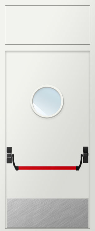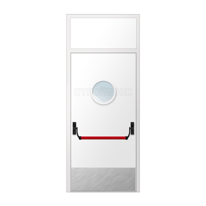 Дверь противопожарная металлическая остекленная EIS60 D300 с фрамугой, антипаникой и накладкой из нержавеющей стали