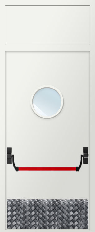 Дверь противопожарная металлическая остекленная EIS60 D300 с фрамугой, антипаникой и накладкой из алюминия