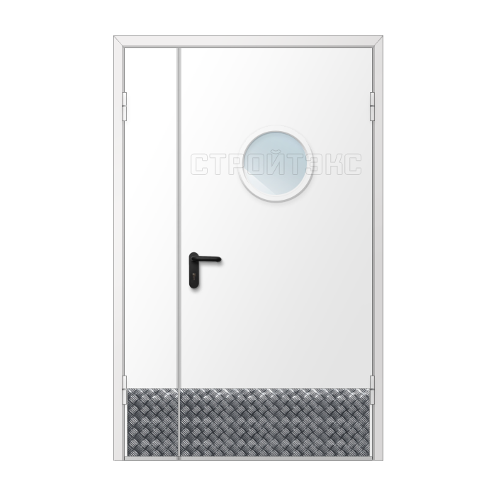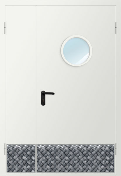 Дверь двупольная металлическая с алюминиевой накладкой и остеклением D300