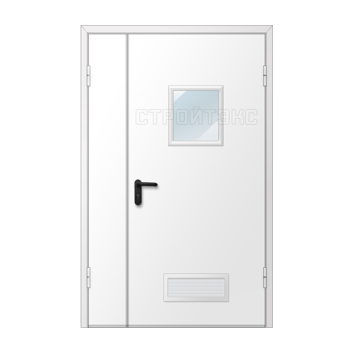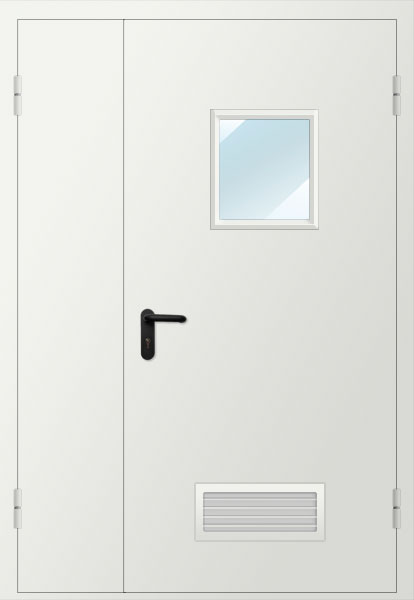 Дверь двупольная металлическая с вентиляционной решеткой и остеклением 300х400