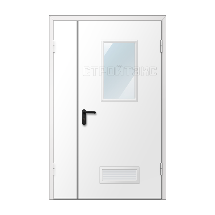 Дверь двупольная металлическая с вентиляционной решеткой и остеклением 300х600