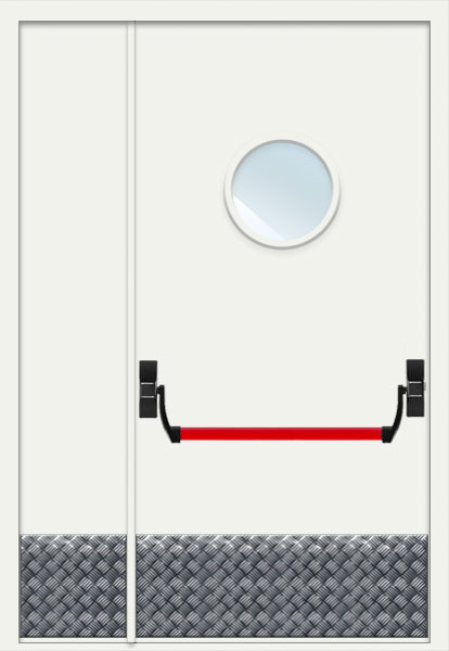 Дверь двупольная металлическая противопожарная с остеклением изготавливается по индивидуальным размерам на нашем собственном производстве. Полотно и рама двери выполнена из металла 1,2 или 1,4 мм. Цвет двери может быть абсолютно любой по шкале RAL, используем порошковое напыление. Качественная упаковка обеспечит доставку в другой регион без рисков. Срок изготовления в среднем занимает 7 дней.