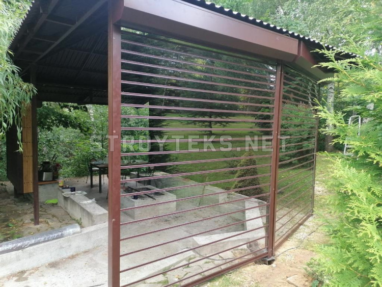 Прозрачные рольставни из поликарбоната устанавливают на летних террасах и верандах, используют для обустройства беседки, уличного бассейна, зимнего сада. В непогоду достаточно просто закрыть рольставни, чтобы защититься от дождя и ветра, а как только выглянет солнце, можно в считанные минуты открыть проемы. Прозрачные ролеты также можно использовать в качестве защиты панорамных окон коттеджа.