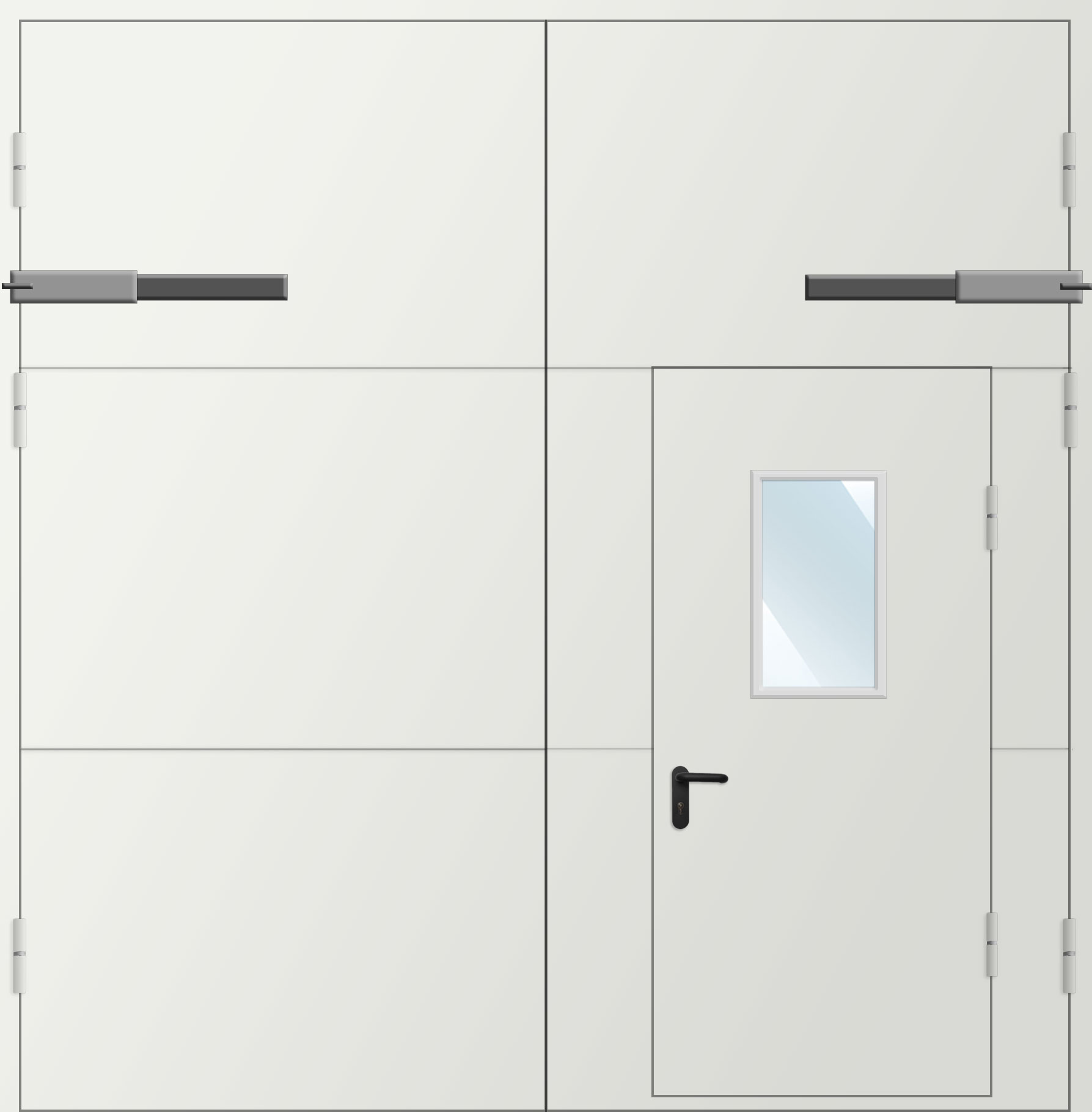Калитка упрощает экстренное реагирование в случае возгорания, позволяет быстрее вывести людей из помещения. Ее изготавливают из того же материала, что и остальное полотно с аналогичным классом огнестойкости. Распашной тип используют при установке на наружных стенах зданий, для устройства внутренних перегородок в отсеках с крупногабаритным промышленным оборудованием.